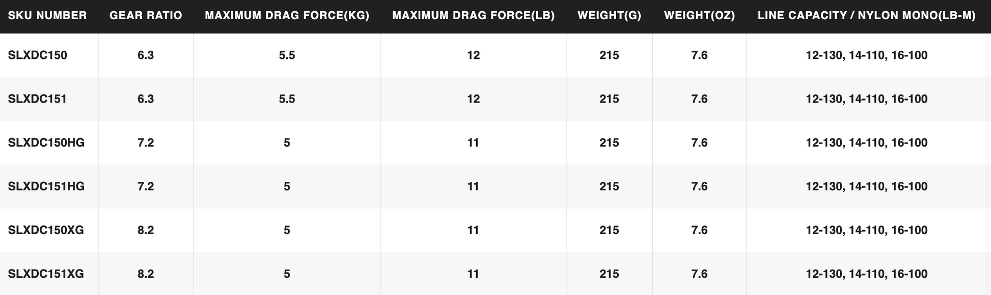 Baitcaster Reel Shimano SLX DC 150 XG