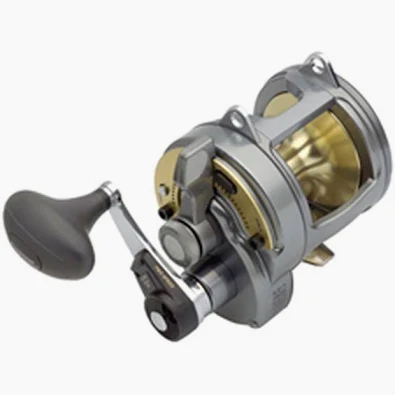 SHIMANO TYRNOS. Tyrnos features a gear ratio of 5.0:1 and is built for power thanks to its 4 A-RB bearings, oversized gears, die-cast machined aluminum handle, and ergonomic rubber power grip. As part of the metal series of reels, the sturdy frame keeps all moving parts in precise alignment to ensure long-term efficiency. The Tyrnos is ideal for numerous saltwater angling applications.